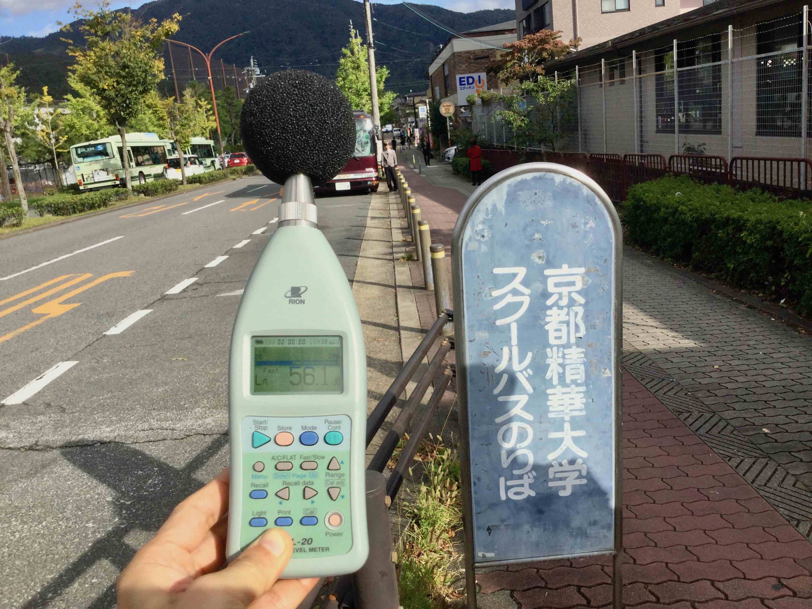 結果は逆だった。放課後のにぎわい車内の音量よりも、大学に向かう静かな車内の方が大きかった。意外な結果である。要因としては、人の声はエンジン音よりも小さいが、人の聴感の敏感なところに音が入るので大きく聞こえること。そして、大学に向かう道路に勾配があり、アクセルを踏む機会が多くなるのでエンジン音がアップすること、だろう。