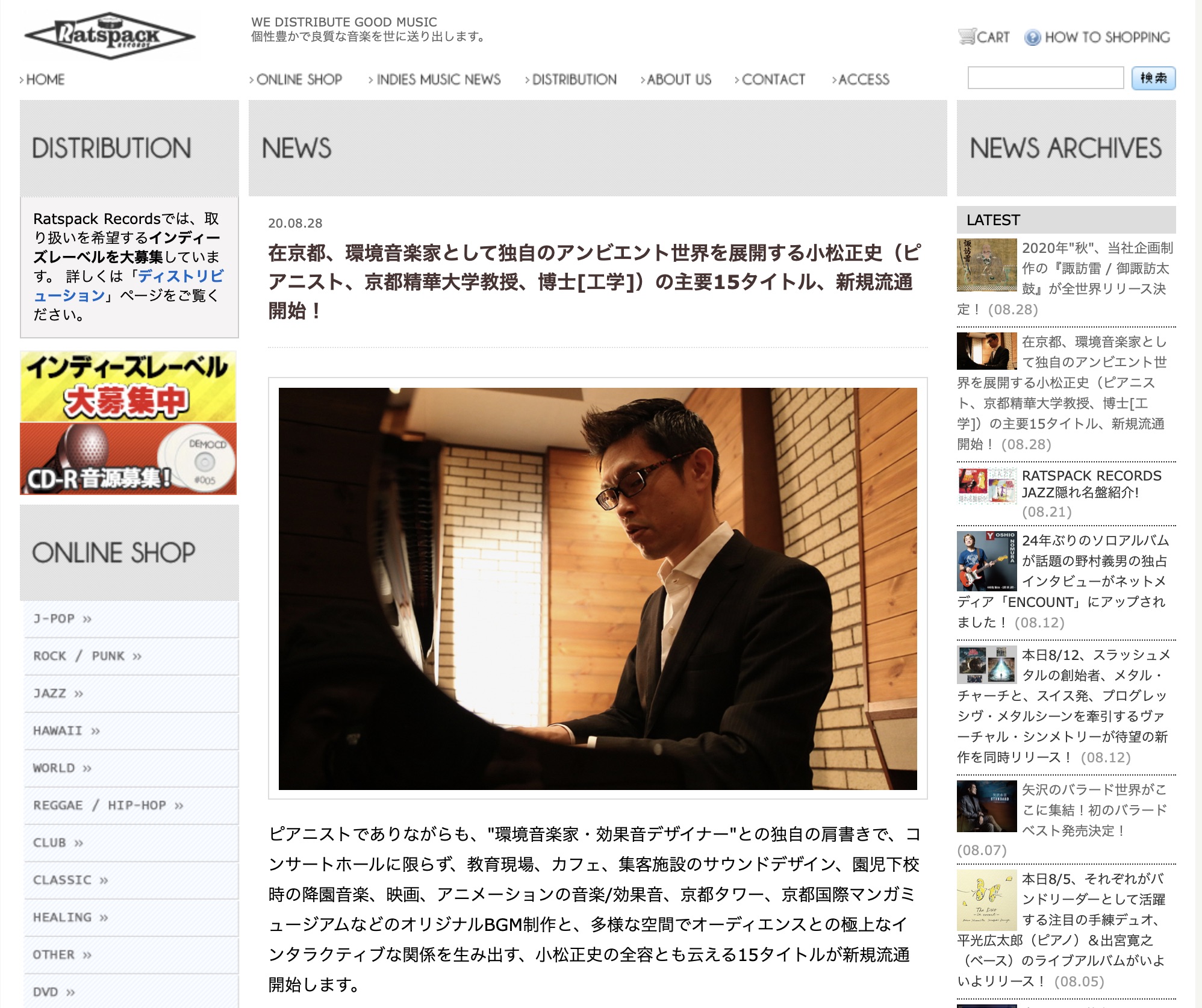 そんな矢先、東京のレコード流通会社「ラッツパック・レコード」からお声がかかり、小松のCD全作品が全国流通する運びとなりました。